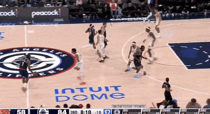 第三节 8:06 哈登找到空切禁区的比尔,传球极富想象力。