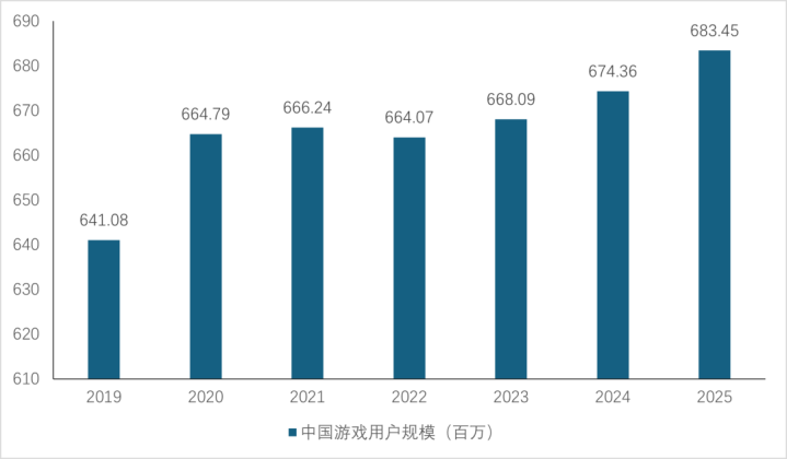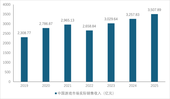 行业市场规模在经历了2022年的大跌后,2023年开始迎来反弹,2025年国内游戏市场实际销售收入与用户规模双双创下新高。根据《2025年中国游戏产业报告》,中国国内游戏市场实际销售收入3,507.89亿元,同比增长7.68%;用户规模6.83亿人,同比增长1.35%。移动游戏实销收入预计达2570.76亿元,同比增长7.92%,主机游戏增速达86.33%,电子竞技市场突破1,700亿元;客户端游戏强势回升,实销收入预计达781.6亿元,同比大幅增长14.97%,占比提升至22.28%。中国游戏销售收入增长主要受益于移动游戏品质提升、头部长青产品稳定贡献、小程序游戏增长强劲以及多端互通发行策略。