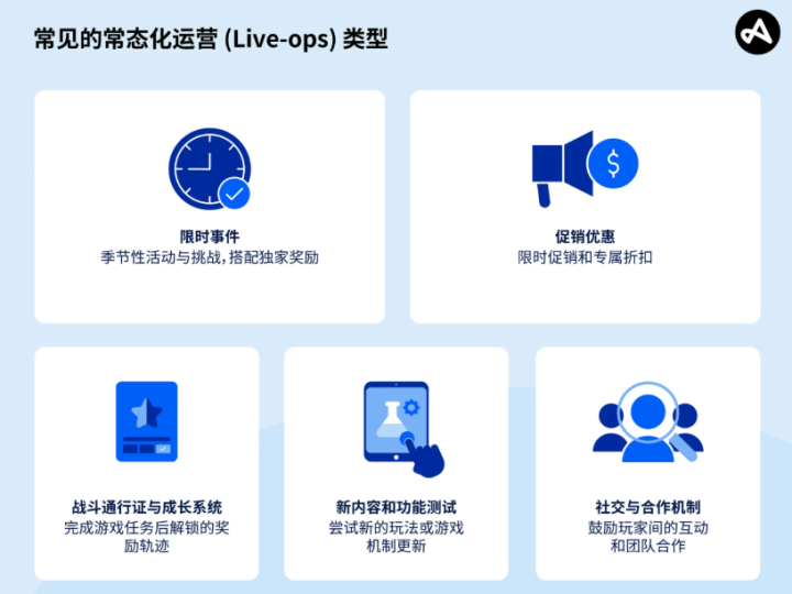 在以应用内购买为主要商业模式的中重度游戏中,常态化运营尤为重要。常见的常态化运营类型包括限时活动、促销优惠、战斗通行证和进度系统、新内容和功能测试、社交和合作机制。