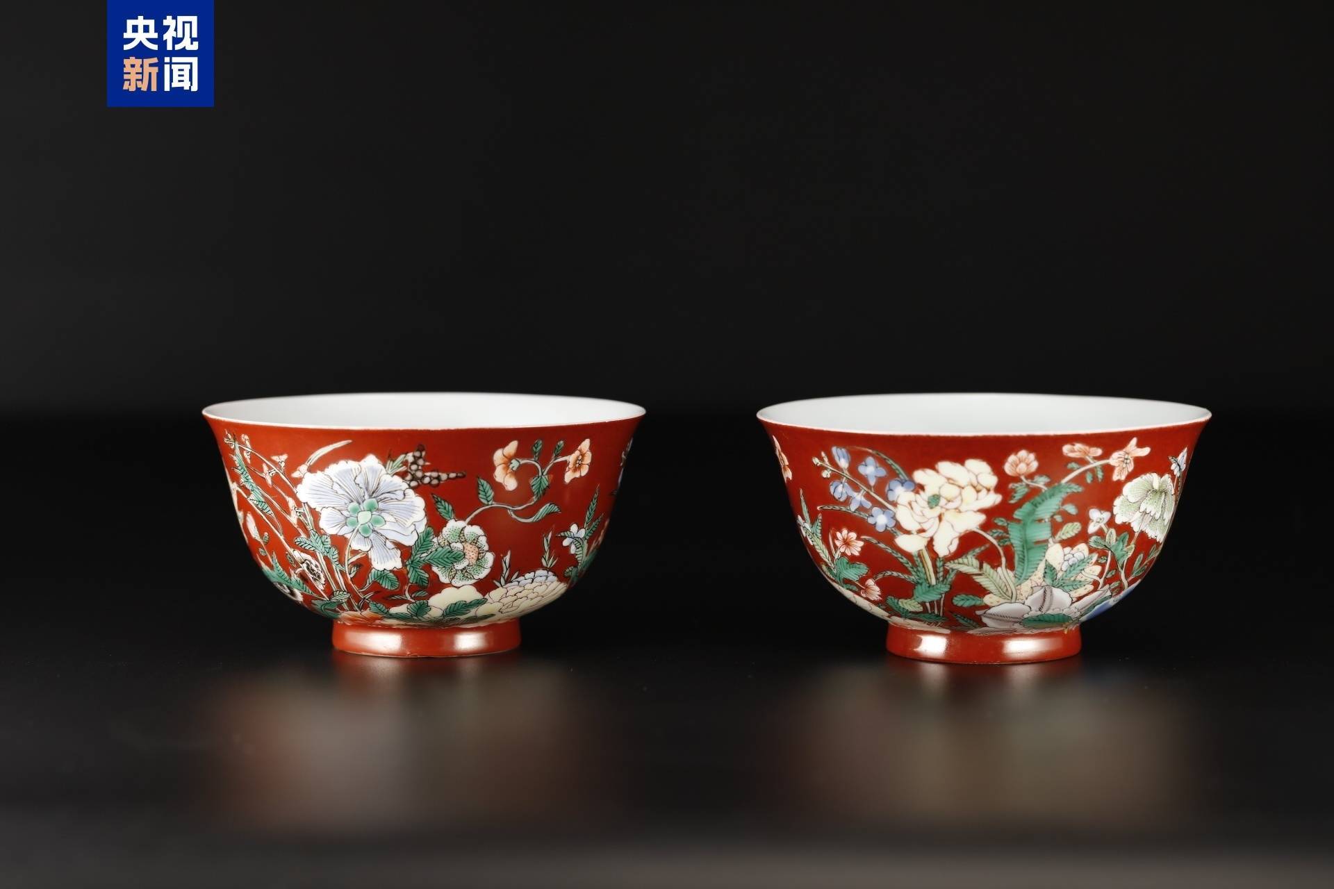 这对珐琅彩花蝶纹碗