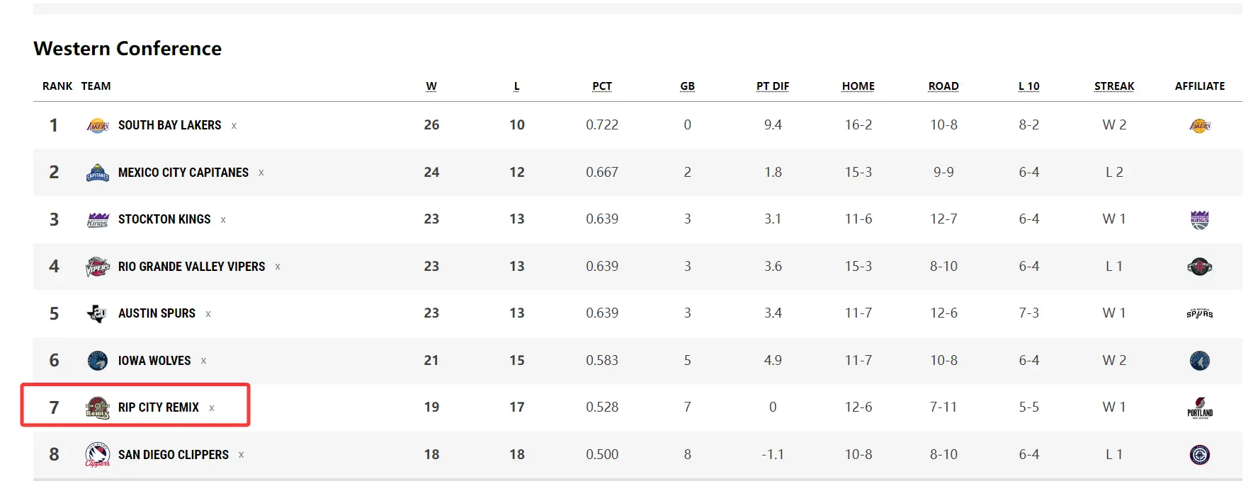 在G联赛的混音是西部第七,在首轮黑七淘汰了墨西哥船长,回到NBA开拓者也是第七首轮要打拿到62胜的马刺。