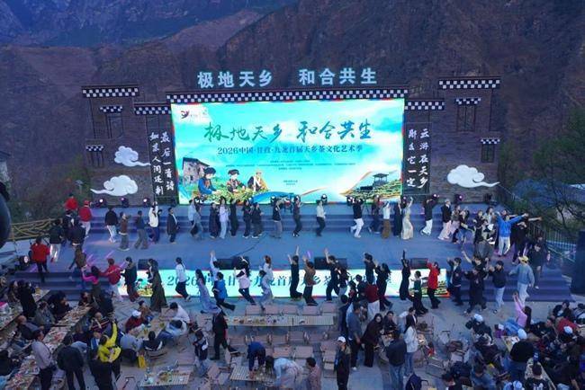 人民网成都3月23日电 (赵祖乐)3月21日,以“极地天乡 和合共生”为主题的2026中国·甘孜·九龙首届天乡茶文化艺术季在魁多镇盛大启幕。来自四面八方的宾朋齐聚海拔两千多米的高原茶山,见证“世界海拔最高的古茶园”与“最大规模的藏汉彝茶山锅庄”两项世界纪录的诞生,沉浸于一场“1+5”游园式文化体验之旅。茶香、歌声、舞步、笑语,在云雾缭绕的茶山间交织成一曲和合共生的华美乐章。
