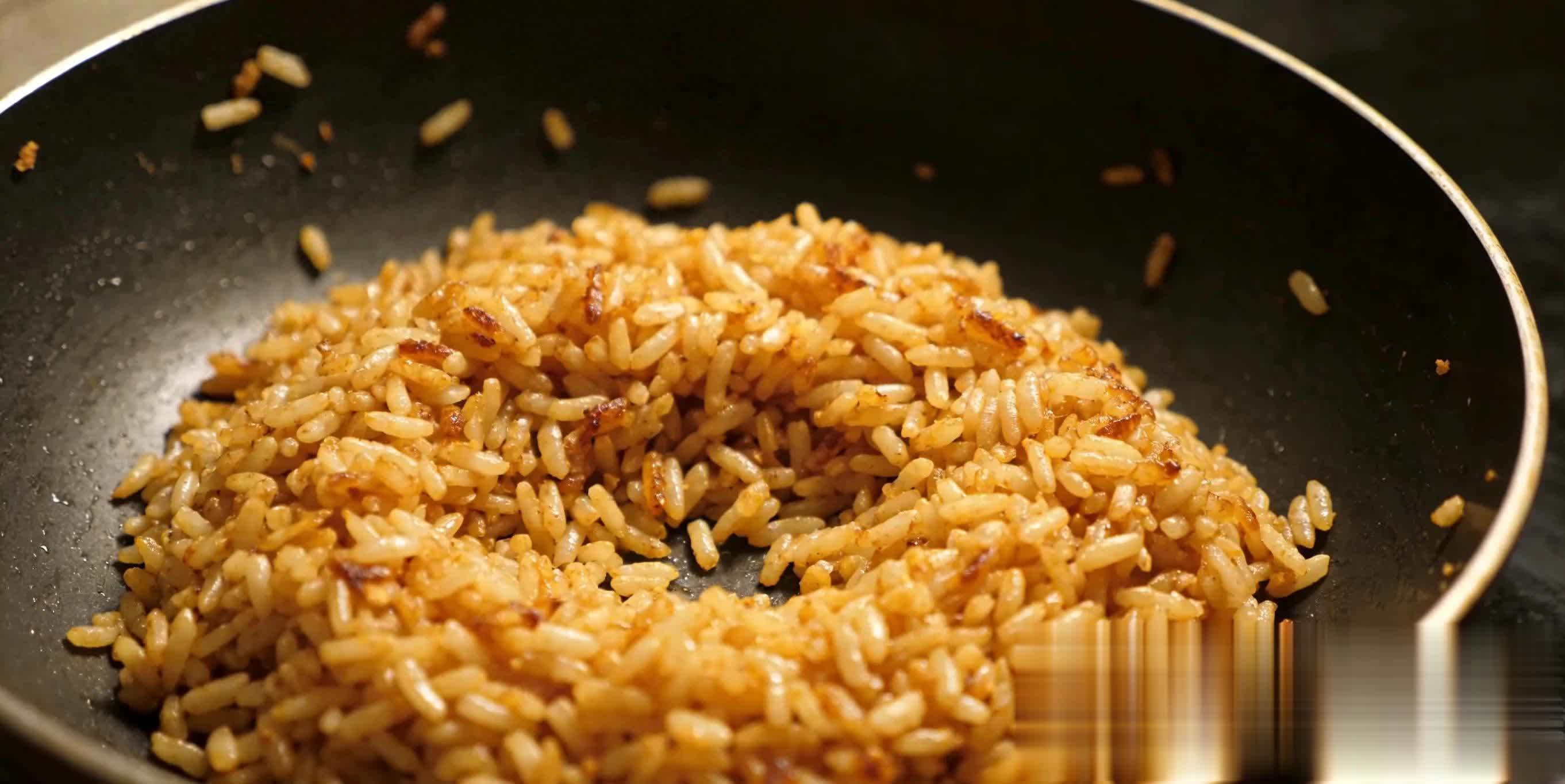 3. 炒至焦黄:持续翻炒10-15分钟,大米慢慢变成金黄色,最后炒成焦黄色、微微开裂、散发焦香即可关火,千万不要炒成炭黑色,炒糊会失去养生效果还伤身。
