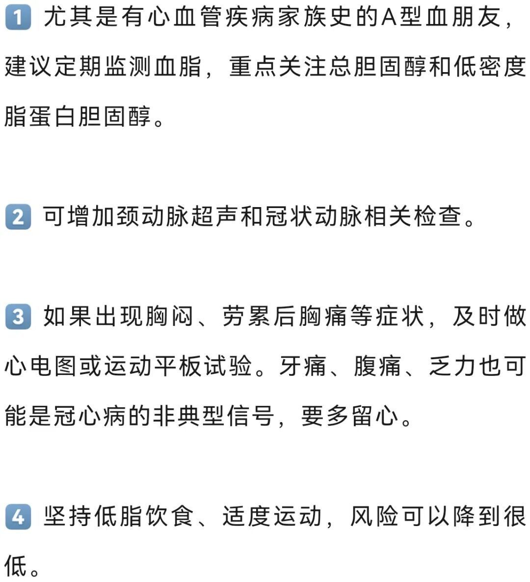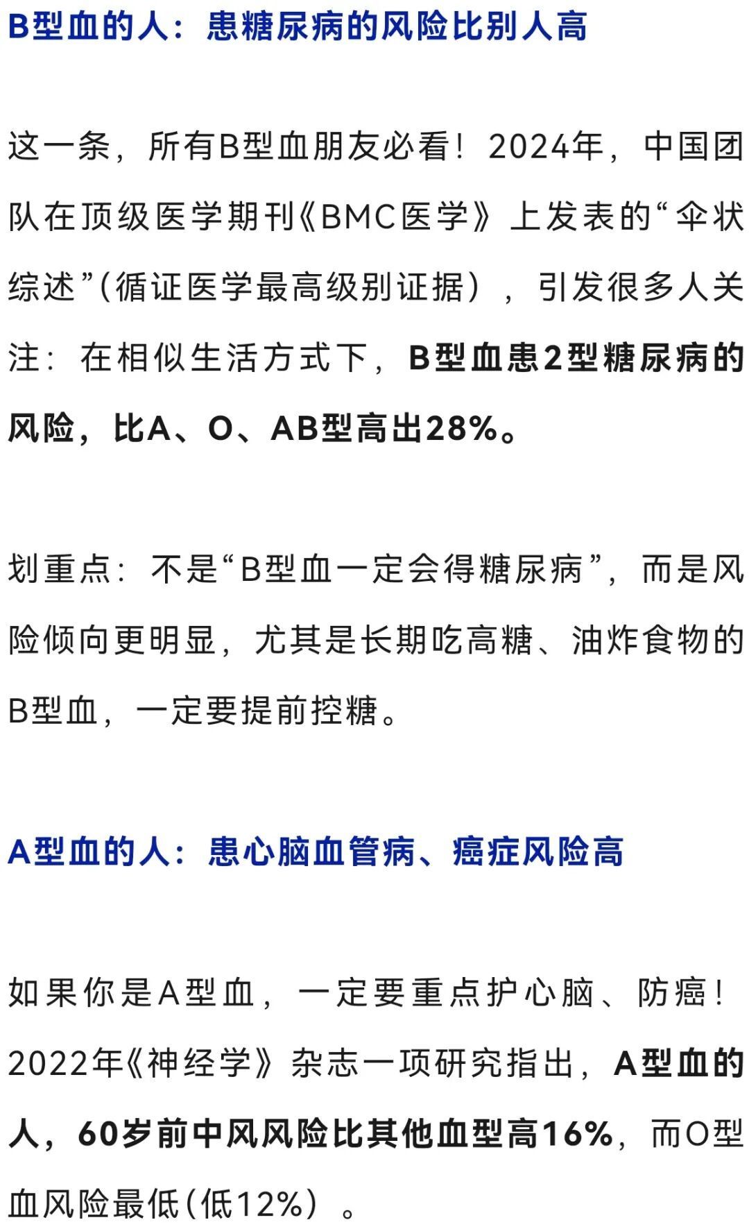 先强调一句:血型只是“风险提示”,不是“患病定论”!真正决定健康的,还是生活习惯。与其焦虑,不如针对性防护,下面这份“不同血型的健康重点清单”,请收好!